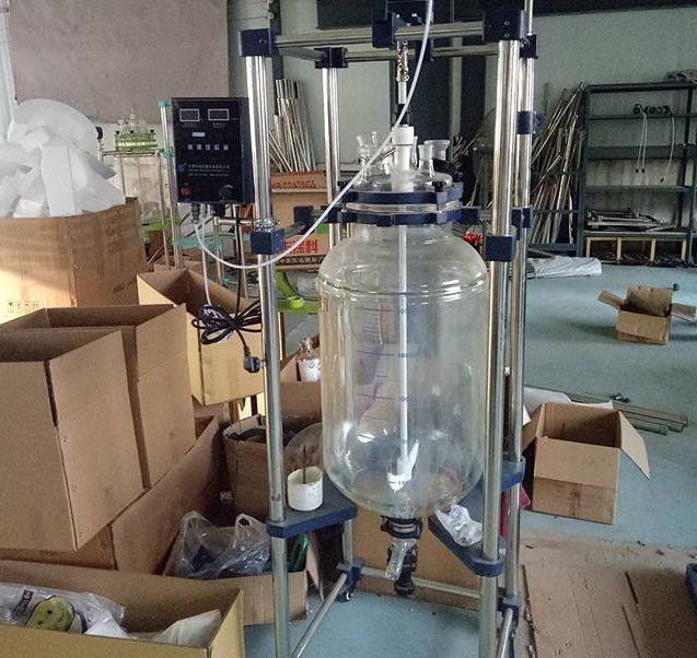 玻璃反應(yīng)釜為雙層玻璃設(shè)計,內(nèi)層放入反應(yīng)溶媒可做攪拌反應(yīng),夾層可通上不同的冷熱源做循環(huán)加熱或冷卻反應(yīng)。在設(shè)定恒溫條件下,在密閉的玻璃反應(yīng)器內(nèi),可根據(jù)使用要求在常壓或負壓條件下進行攪拌反應(yīng),并能做反應(yīng)溶液的回流與蒸餾,是現(xiàn)代精細化工廠、生物制藥和新材料合成的理想中試、生產(chǎn)設(shè)備。