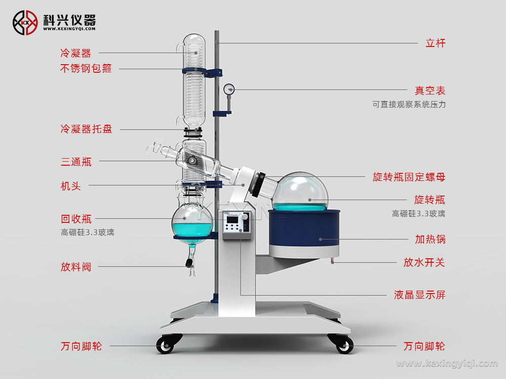 旋轉(zhuǎn)蒸發(fā)儀主要用于醫(yī)藥、化工和生物制藥等行業(yè)的食品等領(lǐng)域的中試,進(jìn)行濃縮、結(jié)晶、干燥、分離及溶媒回收。有大容量、大口徑旋轉(zhuǎn)蒸發(fā)瓶,置于水浴中,邊旋轉(zhuǎn)邊加熱,使溶液高效擴(kuò)散蒸發(fā)。產(chǎn)品可與循環(huán)水式多用真空泵、隔膜真空泵、低溫循環(huán)(真空)泵,循環(huán)冷卻器,恒溫循環(huán)器,低溫冷卻液循環(huán)泵等配套組成系統(tǒng)裝置。其原理為在真空條件下,恒溫加熱,使旋轉(zhuǎn)瓶恒速旋轉(zhuǎn),物料在瓶壁形成大面積薄膜,高效蒸發(fā)。溶媒蒸氣經(jīng)高效玻璃冷凝器冷卻,回收于收集瓶中,大大提高蒸發(fā)效率。特別適用對高溫容易分解變性的生物制品的濃縮提純。
